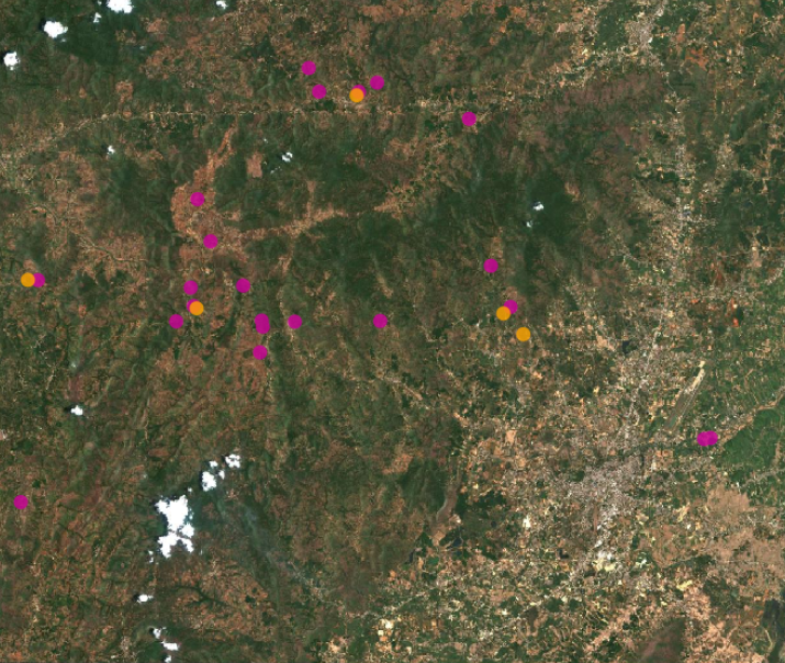 Current burning fires or fire scars may be observed by overlaying the NASA FIRMS fire data on the high resolution Sentinel imagery (10 m) which offer 5-day revisit period imagery.